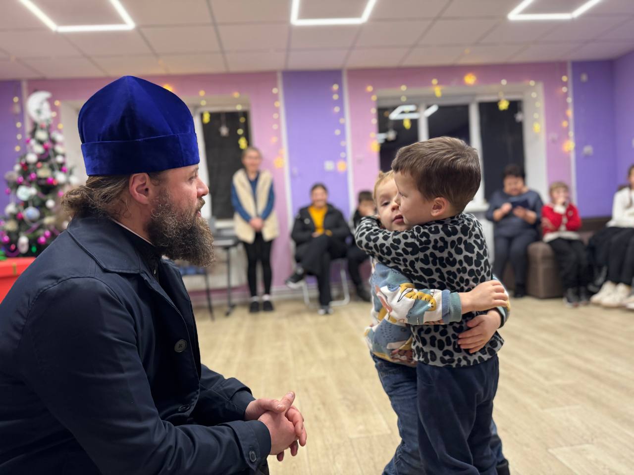 Владика звернувся до присутніх діток зі словами щирої підтримки, розкривши глибокий духовний зміст подвигу святителя Миколая, та провів паралель із подією Різдва Христового. Він нагадав, що так само, як і Господь наш Ісус Христос у Своєму младенстві був вимушений разом із Пречистою Матір’ю та праведним Йосифом залишити місце Свого народження, так і сьогодні багато дітей переживають вимушений шлях і нелегкі випробування.