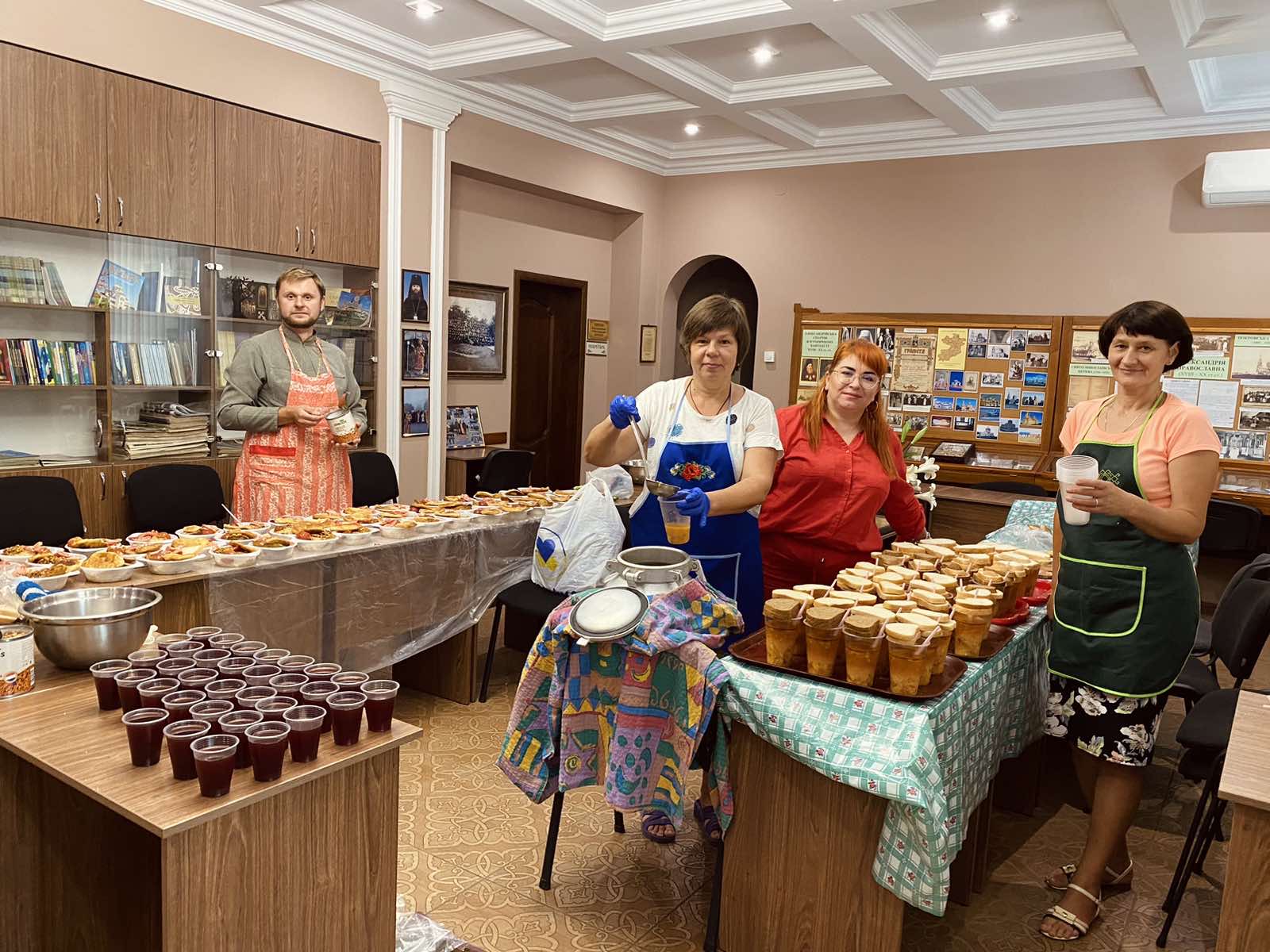 З благословіння Високопреосвященнійшого Боголєпа, митрополита Олександрійського і Світловодського щонеділі , по черзі, православні приходи Олександрійського благочинного округу готують та роздають при єпархіальному духовно-просвітницькому центрі благодійні обіди нужденним.