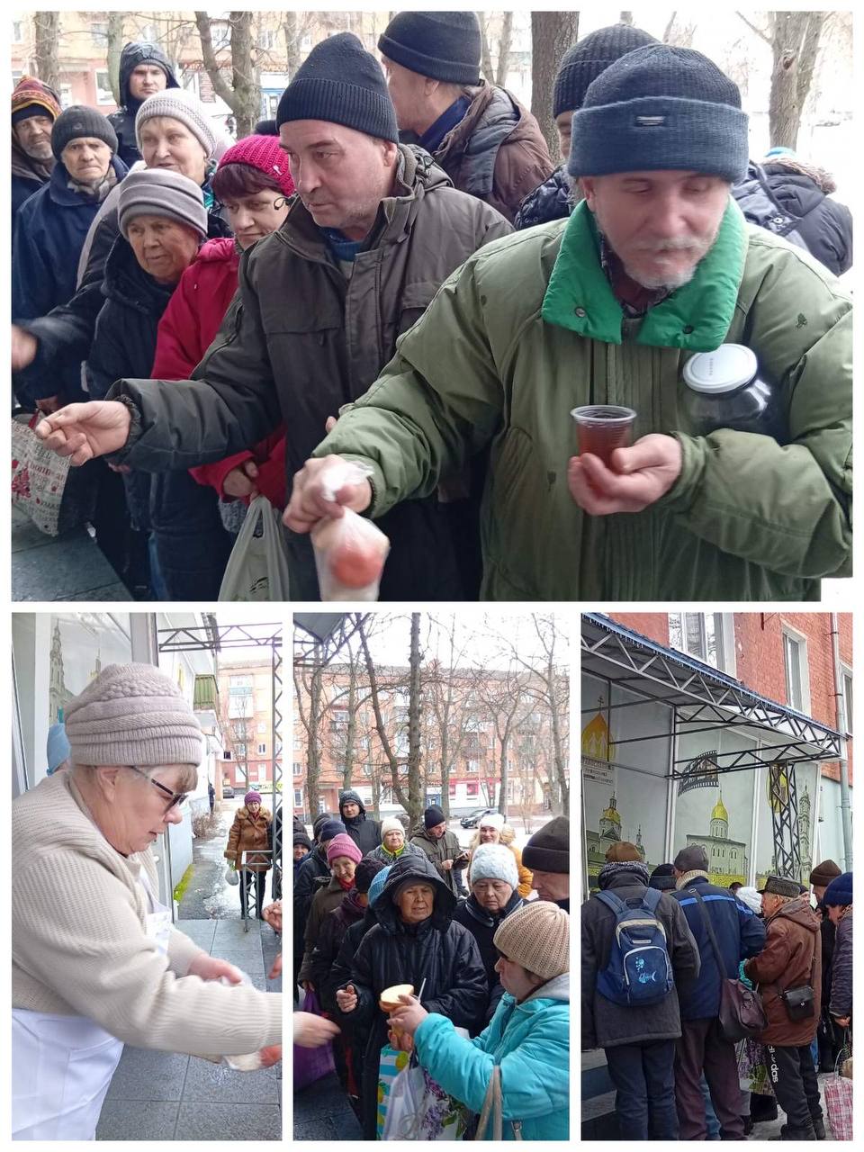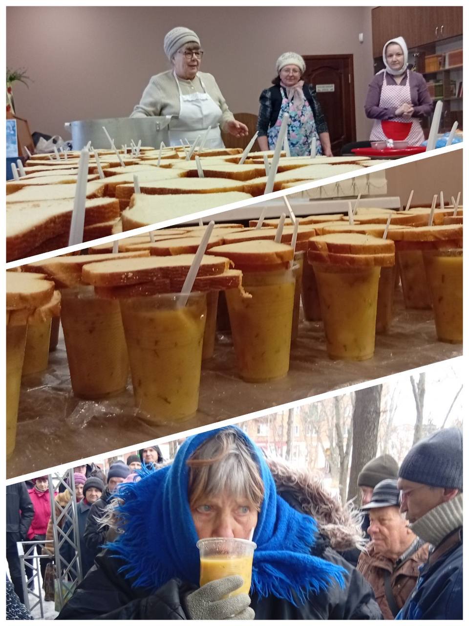 Щонеділі 50–70 осіб мають можливість отримати гарячі домашні страви. Цього дня для всіх були приготовлені гороховий суп, плов із грибами, вінегрет, домашні печені пиріжки, гарячий чай та мандаринки.