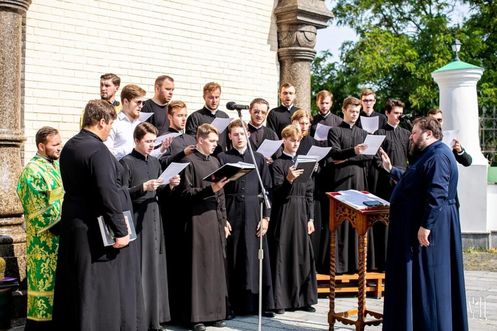 Предстоятель у співслужінні сонму архієреїв, духовенства обителі та гостей у священному сані звершив Божественну літургію на площі біля Ближніх печер Києво-Печерського монастиря. За богослужінням співав студентський хор Київської духовної академії і семінарії.