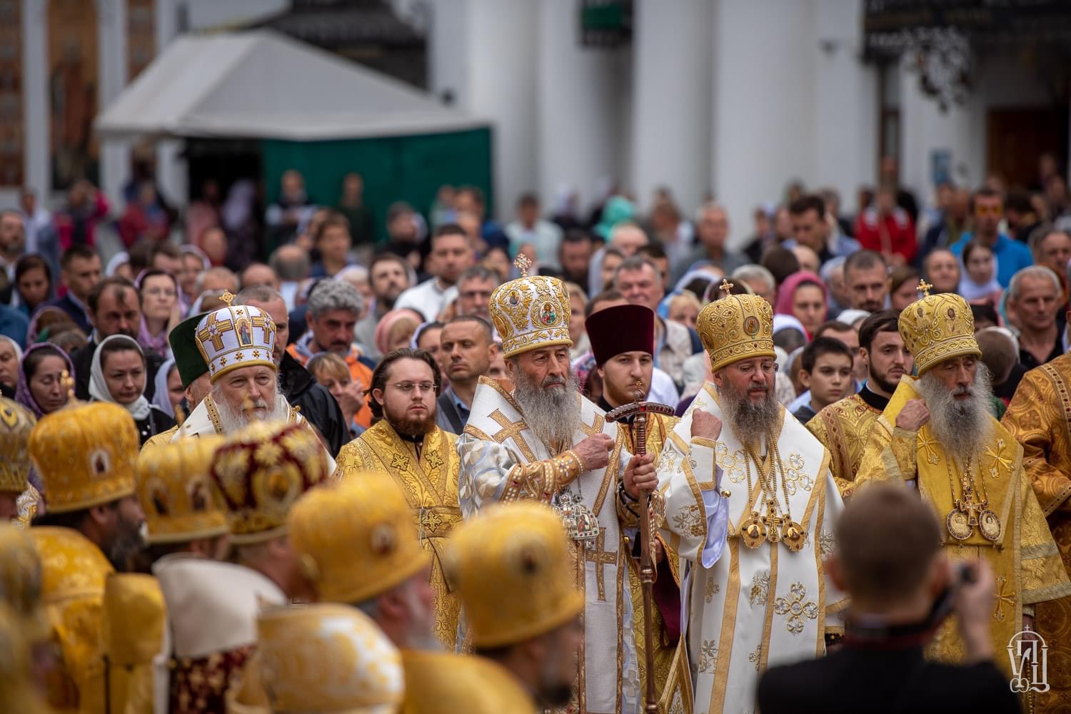Богослужіння відбулось на площі Ближніх печер біля Хресто-Воздвиженського храму. Його Блаженству співслужили архієреї УПЦ, духовенство м. Києва та Київської єпархії, братія Лаври та священники з різних єпархій, які прибули на святкування 1035-річчя Хрещення Київської Русі.