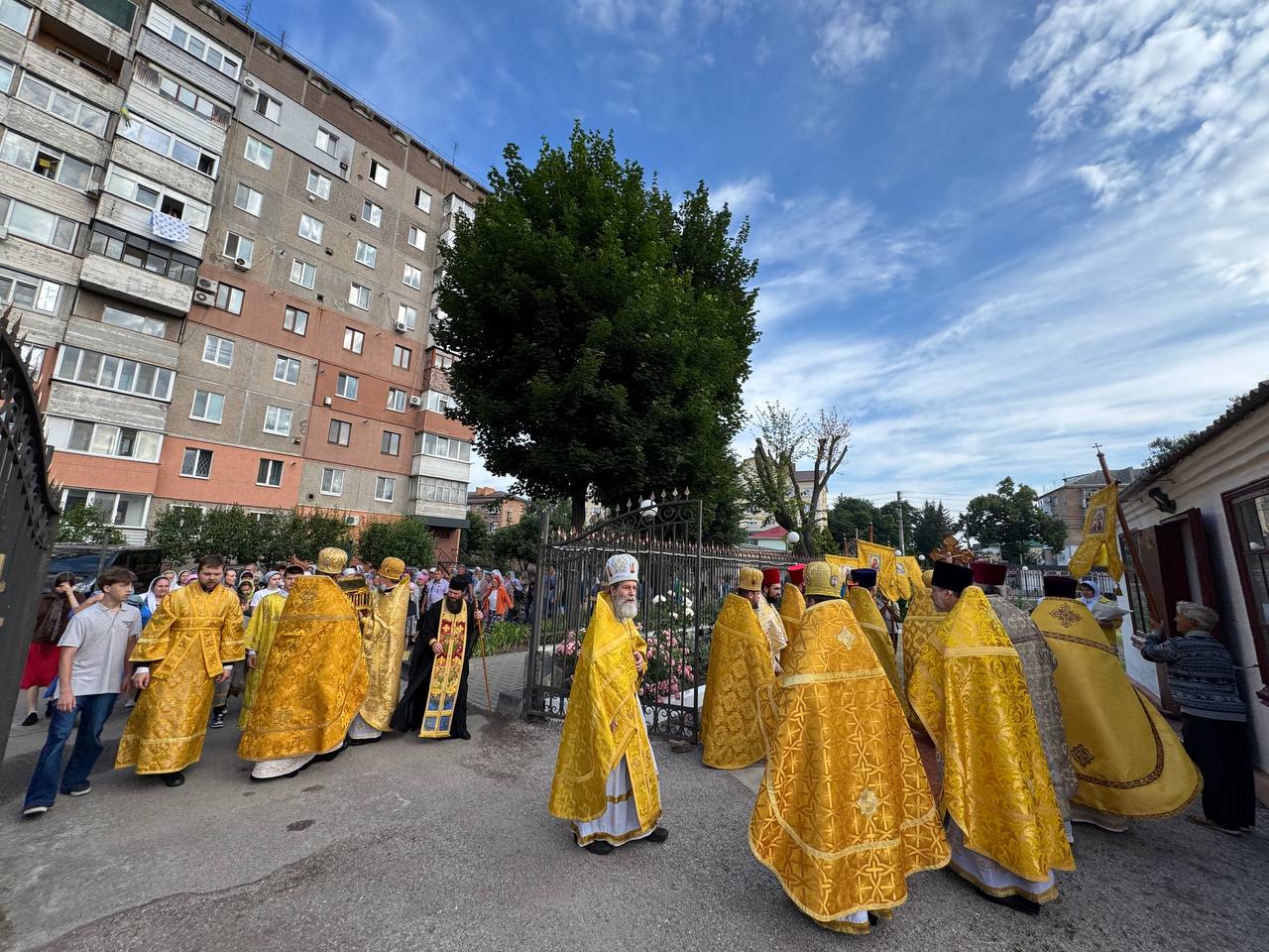 Перед початком літургії владика разом з духовенством та мирянами пройшли хресною ходою містом зі святинею до храму.