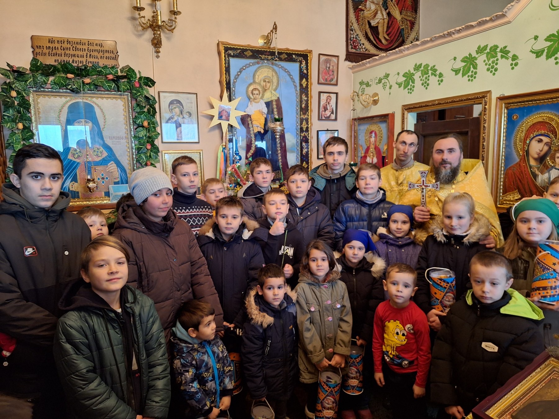 3 благословіння високопреосвященнійшого Боголєпа митрополита Олексанадрійського і Світловодського в храмі прп. Варсонофія Херсонского відбулася Боже́ственна Літургія, після якої, діти від помічників святителя Миколая отримали…